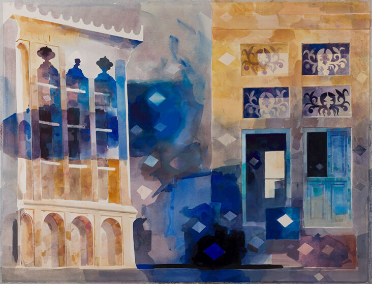 Key bodies of work on view include the Alghaf Series, where the desert tree becomes a symbol of resilience and continuity, the Calligraphy (Hurufiyya) Series, which transforms Arabic script into expressive form, and the Impressionism Series, capturing traditional architecture through light and colour.