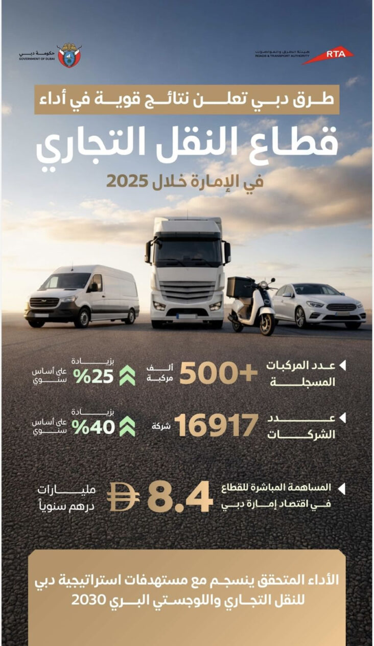 He stated: “The sustained growth of the commercial transport sector reflects rising confidence in Dubai’s business environment and reinforces the emirate’s position as a leading global hub for transport and logistics. This momentum advances sustainable economic development and further consolidates the sector’s role as a key engine of growth.”
